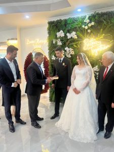 Federasyon yönetimimiz,genç çifte Türk bayrağı ve Kur’an-ı Kerim hediye etti.